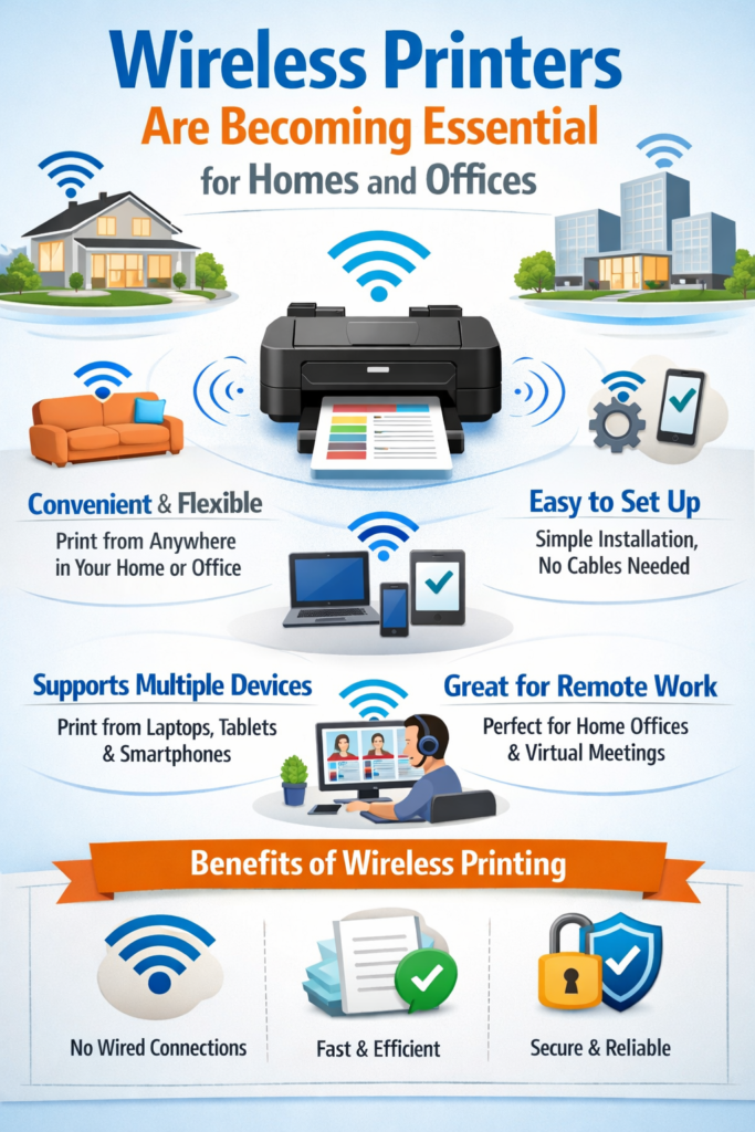 Wireless printers are now becoming an important tool for students, remote workers, and small offices. These printers allow users to print directly from phones and computers without dealing with cable clutter.